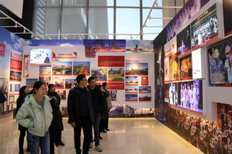 展览分为“70 年奋斗历程”、“经济建设成就”、“政治建设成就”、“文化建设成就”、“社会建设成就”、“生态文明建设成就”和“党的建设成就”等七个主展区。通过解说员的现场解说,使大家了解了 70 年来,辽宁省对祖国建设作出的巨大贡献和翻天覆地的变化,在场党员无不对作为共和国长子的辽宁省对祖国经济、政治、文化等方面作出的贡献而骄傲。
