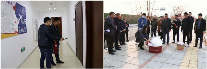 现场演练:安全防护组带领员工实际操练灭火器材,真实体验消防器材的现场实践。