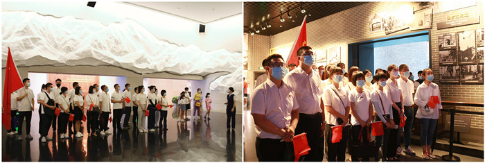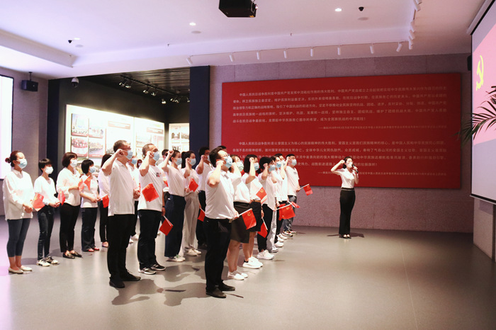 在展馆内,气氛严肃庄重,全体党员整齐列队,高举右拳,面向鲜红的党旗,以昂扬的斗志和饱满的热情,铿锵有力地宣读入党誓词,发出铮铮誓言。每一位党员的心灵受到震撼和洗礼,更加坚定了为共产主义事业而奋斗的理想信念。