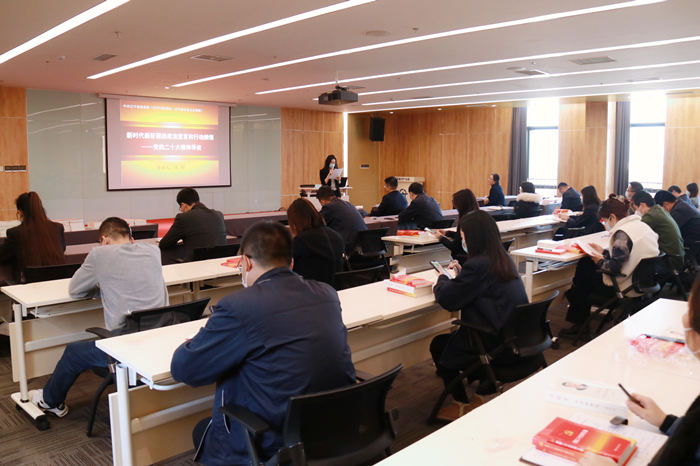 会前,为每位党员发放了党的二十大报告原文、文件汇编等学习资料,要求全体党员原原本本、逐字逐句学习党的二十大报告和党章。会上,邀请到辽宁省委党校党建教研部副主任张明讲授专题党课,以新时代新征程的政治宣言和行动纲领为主题,围绕“过去五年工作和新时代十年的伟大变革、开辟马克思主义中国化时代化新境界、新时代新征程的使命任务与推进思路”等三个方面进行了全面解读,帮助大家全面把握新时代10年伟大变革的深刻内涵和重大意义,深刻理解中国式现代化理论和全面建设社会主义现代化国家战略布局的关系,切实增强贯彻落实的自觉性和坚定性。