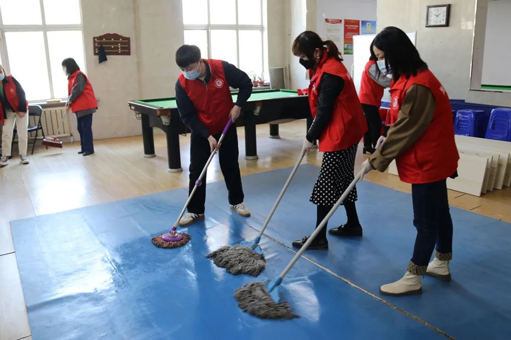 此次活动围绕清扫社区居民活动室展开。下午1点30分,航空集团25名党员及入党积极分子准时到达美地社区,大家迅速穿上醒目的志愿者红马甲,分工合作起来。活动现场,志愿者们积极投入到清扫社区活动室地面、清除卫生死角、擦拭公共展板等工作中。此外党员志愿者们在社区工作人员的带领下,搬桌子、挂条幅、摆凳子,圆满完成美地社区即将召开党员大会的前期布置工作。
